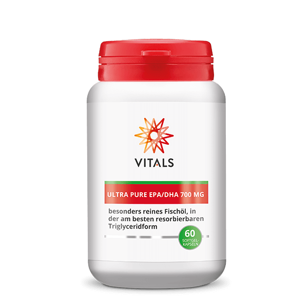 Ultra Pure EPA/DHA 700 mg von Vitals ist ein Fischölpräparat, das die wichtigen Omega-3-Fettsäuren Eicosapentaensäure (EPA) und Docosahexaensäure (DHA) in einer hohen Dosis enthält, mit einem ausgewogenen Verhältnis zwischen EPA und DHA. Es eignet sich ideal für Menschen, die ihre Ernährung täglich mit gesunden Omega-3-Fettsäuren ergänzen wollen. Die Resorbierbarkeit der Fettsäuren in Ultra Pure EPA/DHA 700 mg ist hervorragend, da sie in der hochwertigen Triglyceridform vorliegen. Der Hersteller Golden Omega ist dafür bekannt, Fischöl in höchster Reinheit herzustellen. Außerdem sind die Gesamtoxidationswerte (TOTOX) in jeder Charge Öl sehr niedrig. Das Öl selbst hat eine sehr helle Farbe, was ein Zeichen seiner außergewöhnlich hohen Qualität ist. Alles in allem ist Ultra Pure EPA/DHA 700 mg rein, außergewöhnlich frisch und sehr gut resorbierbar. Kurzum, Sie können sich getrost für Ultra Pure EPA/DHA 700 mg von Vitals entscheiden!